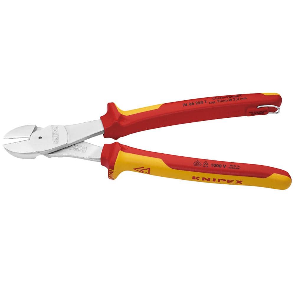 ●ヘッド仕上げ:クロムメッキ●ハンドル仕様:1000V絶縁(VDE絶縁テスト済み)●切断面:傘状●切断能力(中硬線;径mm):4.6●切断能力(硬線;径mm):3.5●切断能力(ピアノ線;径mm):3.0●全長(mm):250●質量(g):475●入念な焼入れ処理が施された刃の硬度は約HRC64。●材質はオイル焼き入れ焼き戻し処理済みのクロームバナジウム高性能鋼。●鍛造により大変頑丈です。●DIN EN/IEC60900基準に適合。●二種類の素材から成る1000V絶縁ハンドルは赤と黄のツートンカラーを採用することで、非絶縁ツールとの差別化を図っています。●ハードな連続使用に耐える鍛造アクスル付き。●ジョイントは鍛造軸カシメを採用し耐久性に優れています。●切断角度とテコ比の最適な調整により、力をかけずに特に高い切断性能を発揮します。●同サイズの一般的な斜ニッパーより20%もかける力を削減できます。●滑り落ち防止を取り付けるための一体型絶縁固定留め輪付き。●最大16mm2の銅線、最大35mm2のアルミ線に最適。