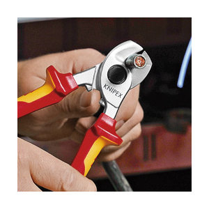 ●ヘッド仕上げ:クロムメッキ●ハンドル仕様:1000V絶縁(VDE絶縁テスト済み)●切断能力(銅線(多芯);径mm):15●切断能力(銅線(多芯);mm2):50●切断能力(AWG):1/0●全長(mm):165●質量(g):275●鍛造により大変頑丈です。●材質はオイル焼き入れ焼き戻し処理済みの高級特殊工具鋼。●DIN EN/IEC60900基準に適合。●二種類の素材から成る1000V絶縁ハンドルは赤と黄のツートンカラーを採用することで、非絶縁ツールとの差別化を図っています。●単線および多芯の銅、アルミニウムケーブルを切断します。●ブレードは精密に研磨され、焼き入れ処理が施されています。●ケーブルを変形させず、綺麗に切断することができます。●片手で簡単に作業できます。●ハンドルはつば付きで、しっかり握ることができます。●挟み込み防止により、指が挟まれるのを防ぎます。●調整可能なねじ式ジョイント、自動ロック機構。●ロックキングレバーが内側の開口ばねでハサミをロックします。●オープンスプリング付き。※スチール製ワイヤーおよび硬引銅線には適しません。