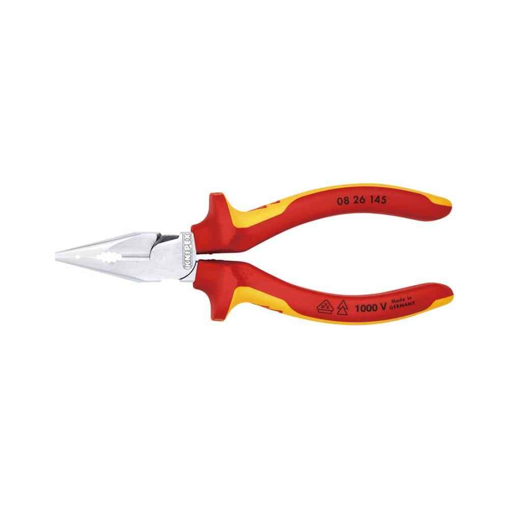 ●ヘッド仕上げ:クロムメッキ●ハンドル仕様:1000V絶縁(VDE絶縁テスト済み)●つかみ面:横すじ入り●切断面:傘状●切断能力(中硬線;径mm):3.0●切断能力(硬線;径mm):2.0●切断能力(銅線(多芯);径mm):8.0●切断能力(銅線(多芯);mm2):16.0●全長(mm):145●質量(g):145●材質はオイル焼き入れ焼き戻し処理済みの特殊工具鋼。●鍛造により大変頑丈です。●スリムなヘッド形状と先の尖ったジョーにより(確実な回り止め)、アクセスが難しい箇所でも最適に作業できます。●掴持面の片側を凸形にして、平坦な部品を確実に掴持します。●フライス加工した掴持部分の溝により、釘、ピン、ボルトなどの小さなワークピースを確実に保持し、引き抜きます。●信頼性が高く、さまざまな用途に対応した先細コンビネーションプライヤー(携帯用)。●高いテコ比の強力ジョイントにより、切断が簡単に行えます。●中硬線および硬線用の切刃付き。●長い耐久性と安定した刃先。