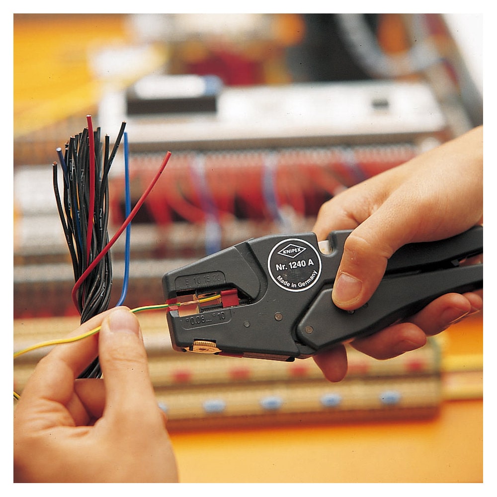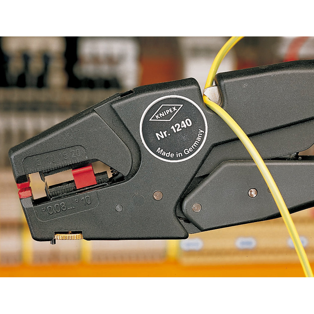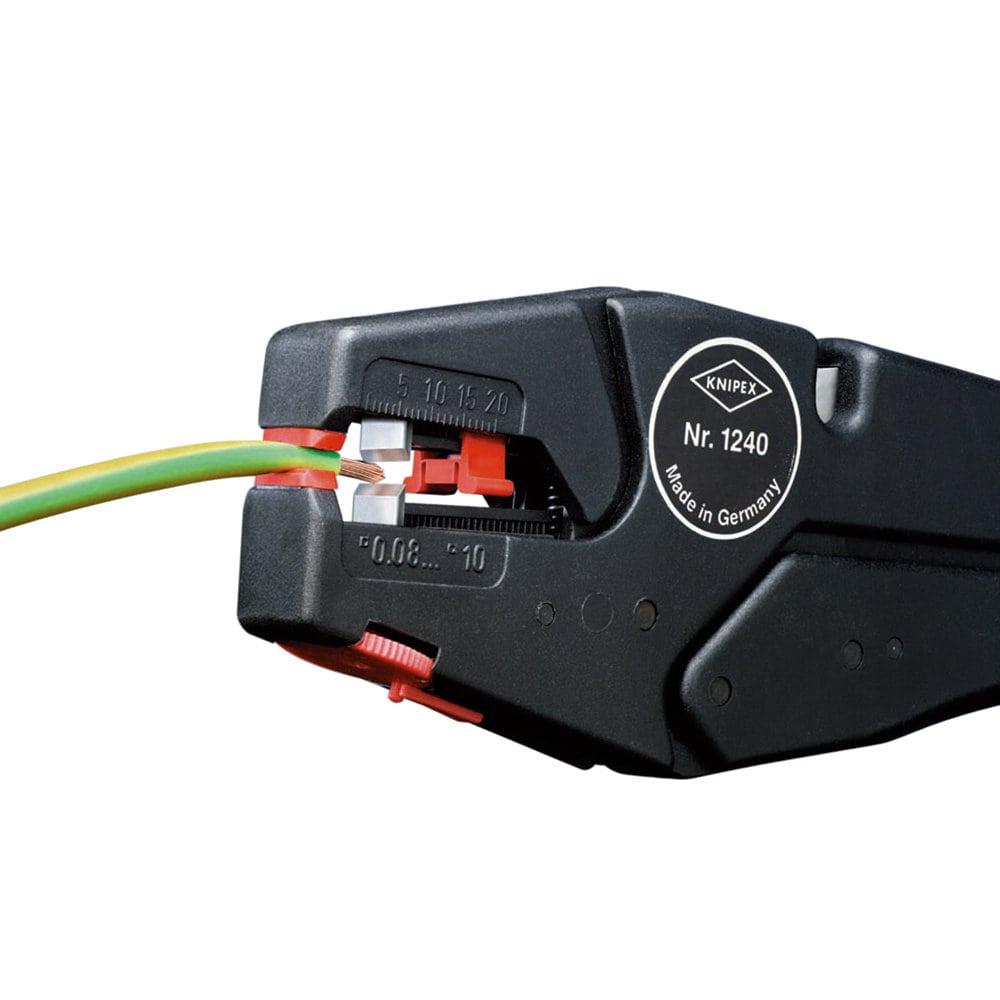 ●ボディー材質:グラスファイバー強化プラスチック●刃材質:特殊工具鋼、油焼き入れ●ストリッピング能力(mm2):0.03-10.0●ストリッピング能力(AWG):32-7●切り込み長さ(mm):3.0-18.0●全長(mm):200●質量(g):202●交換部品:替刃(1249-01)、クランピングジョー(1249-02)、調整ストッパー(1249-03)●ケーブルの太さに合わせて自動的に切り込みの深さを調整しますので、導線を傷つけません。●切り込みの深さは被覆に応じて調節することができます。●銅及びアルミのワイヤーを切断することができるワイヤーカッターを装備。●複合線の場合は10mm2まで、単線の場合は6mm2までの切断が可能です。●スムーズに動く構造。●替刃、替アゴ交換は簡単に行えます。●切り込み長さを3.0~18.0mmの範囲で調節できるストッパー付き。●単線、複合線、より線のプラスチックやゴム素材の被覆のストリッピング(皮むき)作業に。●一回の操作で最大10.0mm幅の薄いフラットケーブル用。