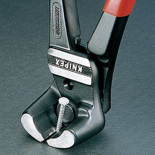 ●ヘッド仕上げ:黒防錆コート、磨き●ハンドル仕様:プラスチックコーティング●切断面:傘状●切断能力(軟線;径mm):1.0-6.0●切断能力(中硬線;径mm):4.0●切断能力(硬線;径mm):3.5●切断能力(ピアノ線;径mm):3.0●先端曲がり角度(°):85●全長(mm):200●質量(g):435●一般的なボルトエンドカッティングニッパーより少ない力で切断することができる扱いやすいニッパーです。●軟線、硬線、ピアノ線を切断することができます。●てこの原理を最大限利用するデザインにより、少ない力で高い切断能力を発揮します。●入念な焼入れ処理が施された刃の硬度は約HRC64。●鍛造ボディーにより大変頑丈です。●材質はオイル焼き入れ焼き戻し処理済みのバナジウム電気鋼。●KNIPEXのボルトエンドカッティングニッパーは一般的な同等品と比べ、非常に高い切断能力を持ちながらも、非常に軽量で扱いやすく作られています。●直径3.0mmまでのピアノ線が切断できる高い切断能力。●てこの原理を最大限に利用しているので負担が少ない。●軽量でコンパクトなデザインなので扱いやすい。●複雑なトグルレバー構造は採用せず、シンプルなシングル(重ね)ジョイントを採用しているので摩擦が少なくスムーズに動きます。●ワイヤーフェンスの加工、ボルトや釘の切断に。