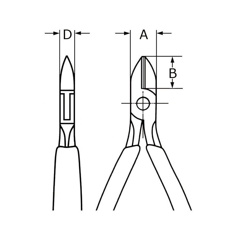 ●ヘッド仕上げ:鏡面磨き●ハンドル仕様:コンフォート●スタイル:ラウンドヘッド●切断面:小さい傘状●切断能力(軟線;径mm):0.3-1.6●切断能力(中硬線;径mm):1.2●切断能力(硬線;径mm):0.6●ジョイント部の幅(A;mm):11.0●口先の長さ(B;mm):14.0●ジョイント部の厚さ(D;mm):7.5●全長(mm):115●質量(g):80●極めて精密なエレクトロニクス関連、精密機器関連の切断作業に最適な高精度のニッパー。●ジョイント部は精密な3枚合わせのボックスジョイント。●抵抗感の少ないダブルオープンスプリング付きですので、繰り返し作業する際にも口を開く必要がありません。●研磨または鏡面研磨(2番の仕上げのみ)と繊細な油膜により効果的に錆止めします。●クロムが剥がれることによって回路の故障を引き起こすことはありません。●鍛造により大変頑丈です。●材質はオイル焼き入れ焼き戻し処理済みの特殊工具鋼。●丸型ヘッドタイプ。●僅かに面取りしています。●入念な焼入れ処理が施された刃の硬度は約HRC60。●ハンドルは複数の材質で作られたプラスチックカバー付き。※コンフォートハンドル(本品)は絶縁ではありません。