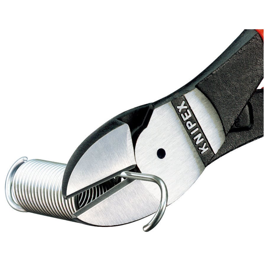 ●ヘッド仕上げ:黒防錆コート、研磨●ハンドル仕様:プラスチックコーティング●刃材質:クロムバナジウム高性能鋼(多段階油焼き入れ)●切断面:傘状(斜め刃)●切断能力(中硬線;径mm):4.6●切断能力(硬線;径mm):3.5●切断能力(ピアノ線;径mm):3.0●ヘッド部角度(°):12●全長(mm):250●質量(g):390●ジョイントは鍛造軸カシメを採用し耐久性に優れています。●ピアノ線を含む様々なワイヤーの切断に適しています。●最適な刃の位置と角度、てこの原理を最大限発揮するデザイン、人間工学に基づいたハンドル形状-この3つの利点により、少ない力で高い切断能力を発揮します。●高周波焼き入れを施した精密な刃、(刃の硬度約60HRC)バネ鋼線を含む全ての種類のワイヤーに使用できます。●鍛造により大変頑丈です。●クリアランスを確保するため、ヘッド部には12°のアングルを設けており、平面上での作業が容易に行えます。●最大16mm2の銅線、最大35mm2のアルミ線に適しています。