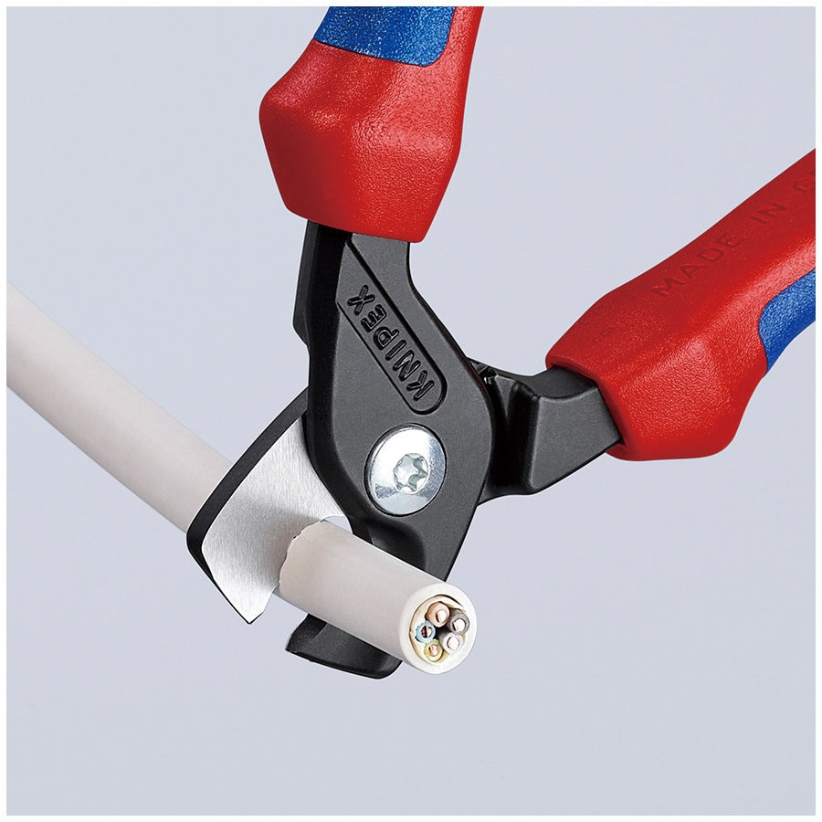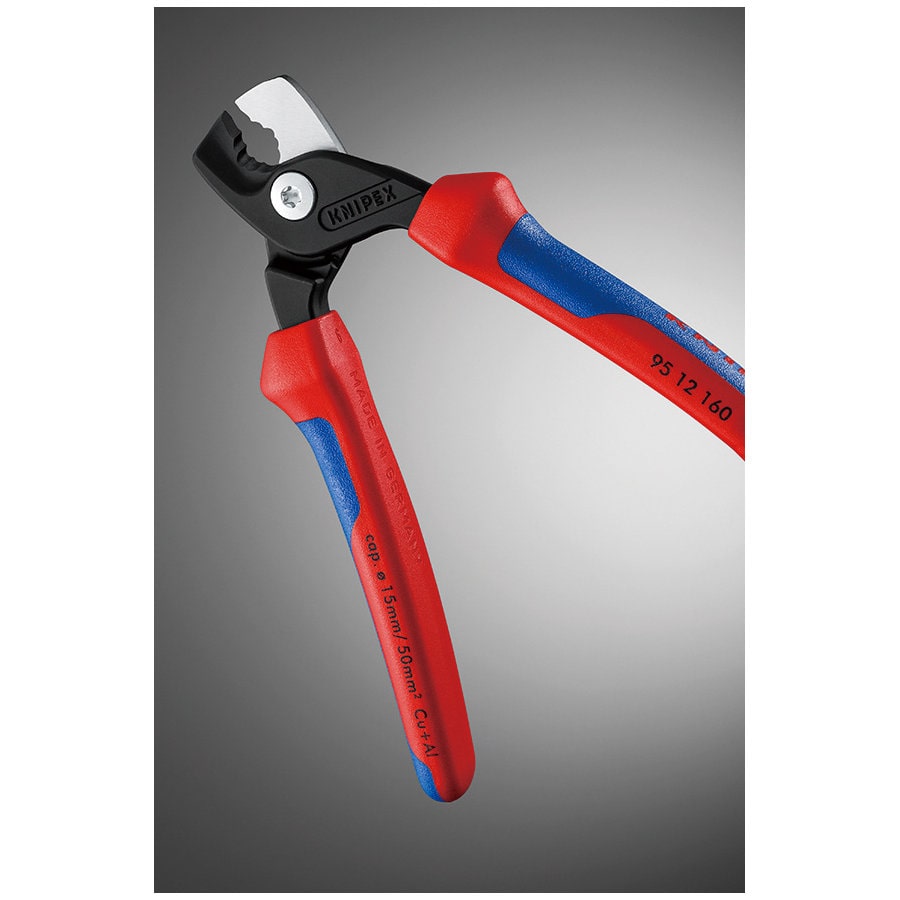 ●ヘッド仕上げ:磨き(黒)●ハンドル仕様:コンフォート●銅線(多芯)の切断能力(径mm):15●銅線(多芯)の切断能力(mm2):50●切断能力(AWG):1/0●全長(mm):160●質量(g):220●全長160mmと小型で軽量ながら、強靱で潰れのない綺麗な切断が可能。●はるかに軽い力で段階的に次々とワイヤーを切断し、同サイズの標準的なケーブルカッターよりも最大40%負荷を軽減。●人間工学に基づいたハンドルデザインで、より太いケーブル径でも最上の切断を体感できます。●最大径15mm(50mm2)の多芯銅線およびアルミ線を切断。●最大5×4mm2の単銅線およびアルミ線を切断。●ケーブルを潰さずに切断。●ボルトジョイントで正確かつ簡単な切断を可能にし、耐久性に優れています。●高周波焼き入れを施した切断刃。●挟み込み防止機能で安全な作業を実現。●高級特殊工具鋼、鍛造品、油焼き入れ。※スチール製ワイヤーおよび硬引銅線には適しません。