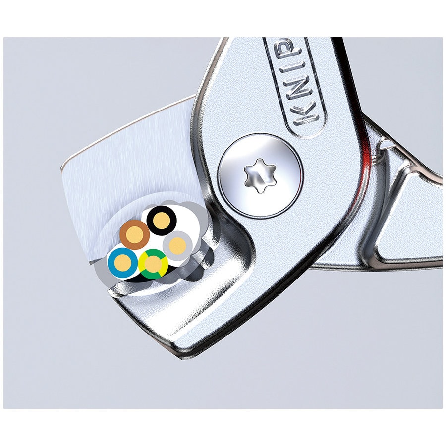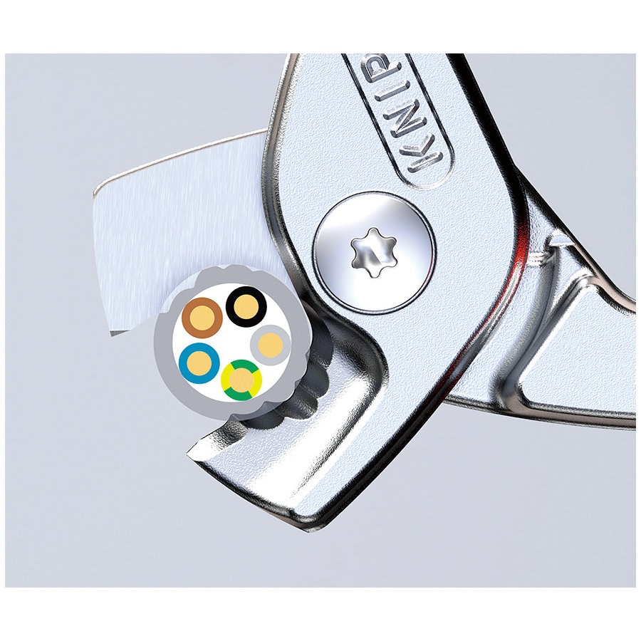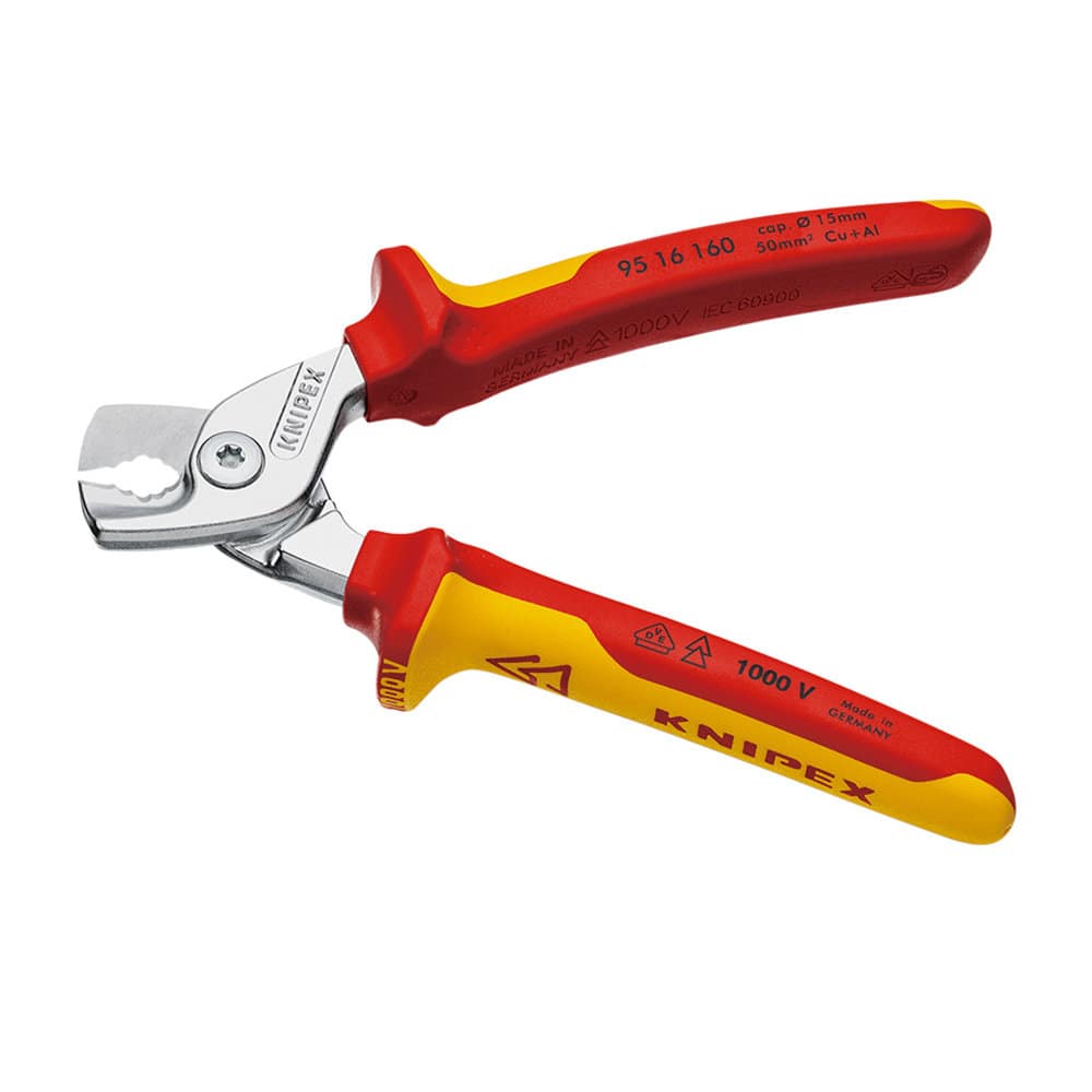 ●ヘッド仕上げ:磨き(黒)●ハンドル仕様:1000V絶縁(VDE絶縁テスト済み)●切断能力(銅線(多芯);径mm):15●切断能力(銅線(多芯);mm2):50●切断能力(AWG):1/0●全長(mm):160●質量(g):225●全長160mmと小型で軽量ながら、強靱で潰れのない綺麗な切断が可能。●はるかに軽い力で段階的に次々とワイヤーを切断し、同サイズの標準的なケーブルカッターよりも最大40%負荷を軽減。●人間工学に基づいたハンドルデザインで、より太いケーブル径でも最上の切断を体感できます。●最大径15mm(50mm2)の多芯銅線およびアルミ線を切断。●最大5×4mm2の単銅線およびアルミ線を切断。●ケーブルを潰さずに切断。●ボルトジョイントで正確かつ簡単な切断を可能にし、耐久性に優れています。●高周波焼き入れを施した切断刃。●挟み込み防止機能で安全な作業を実現。●高級特殊工具鋼、鍛造品、油焼き入れ。※スチール製ワイヤーおよび硬引銅線には適しません。