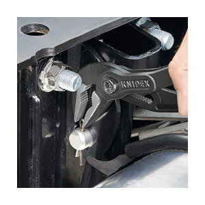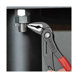 ●ヘッド仕上げ:グレー防錆コート、磨き●ハンドル仕様:プラスチックコーティング(滑り防止仕上げ)●つかみ面:横すじ入り●調整段数:19●最大平行開口(mm):37●最大くわえ深さ(mm):42●パイプつかみ能力(径mm):32●ナットつかみ能力(mm):34●全長(mm):250●質量(g):328●ヘッド部やジョイント部がスリムにデザインされており、挟い場所での作業に最適です。●ヘッド先端は特にスリムな形状です。●プッシュボタンを押すだけで片手で簡単にサイズを調節できます。●19段階に細かく調節できるため、最も握りやすい最適なハンドル幅にて作業できます。●アゴの開き調整はプッシュボタンにて行うため、作業中は不意に口幅が変わらないので安心です。●ジョイント部は横方向へのブレを防止する3枚合わせ(ボックスジョイント)。●口先が長いため、フラットな対象物も安定してつかむことができます。●少ない力でパイプやナットを確実につかみます。●入念な焼き入れ処理が施されたつかみ面の硬度は約HRC61で、耐摩耗性が高く、確実なグリップを発揮します。●てこの原理を最大限発揮するデザインで高いグリップ力を発揮します。●口幅を最大に調節して握っても、ハンドルの間にクリアランスを確保する指詰めストッパー付き。●材質はオイル焼き入れ焼き戻し処理済みのクロームバナジウム電気鋼。●工場設備や自動車関連のメンテナンス作業に。