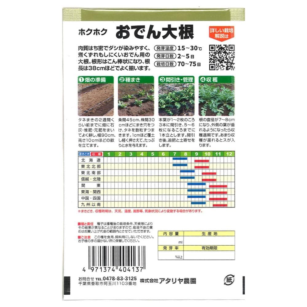 肉質はち密でダシが染みやすく、煮くずれもしにくいおでん用の大根。根形はこん棒状になり、根長は38cmほどでよく揃います。