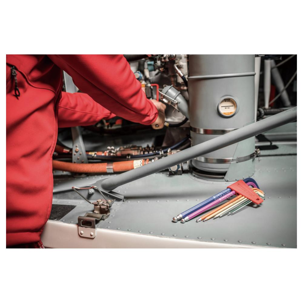 ●質量(g):406●PBレインボーレンチはそれぞれのカラーにより使用寸法を一目で判別できるようにしました。●特殊パウダーコートにより、耐錆性があります。●エッジは軽く隅取りしてあり、レンチをたやすくネジ穴に差し込むことができます。●レンチには5桁の生産番号が記されており、この番号で原料段階の製造過程まで遡ることができます。●硬度はHRC59と大変高く、しかも強靭に作られているので、耐摩擦性、持久性に優れ、高トルクをかけることができます。●精密に作られたボールポイントで角度のついたところのネジを回すことが可能です。(斜め30°の角度までOK)●ホルダー付き。●環境保護を考えたパッケージレス仕様です。●セット内容:ボール付ロングレインボー六角棒レンチ(1.5、2、2.5、3、4、5、6、8、10mm)※ボール部では本締めできません。