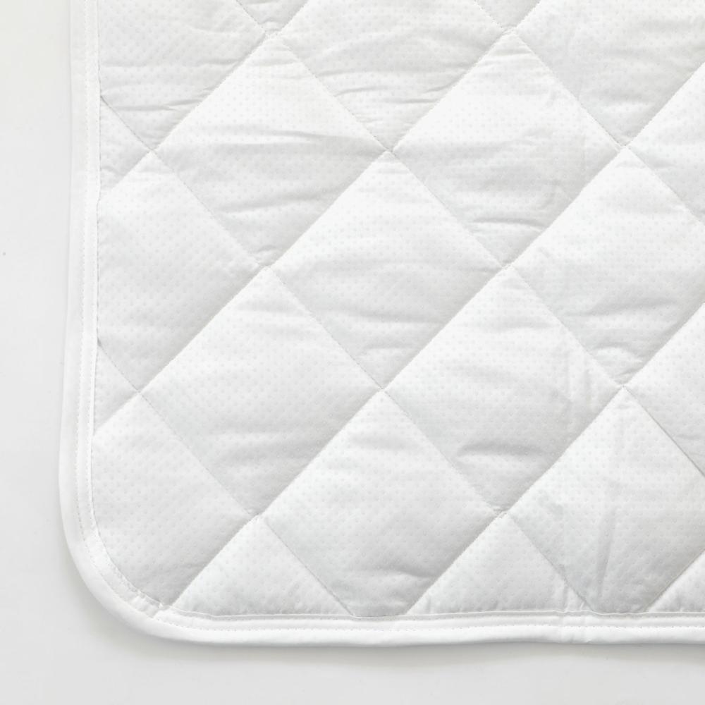ベッドマットレスの上に直接敷いて、寝心地の調整や、マットレスの汚れ防止に使います。シーツや敷パッドをご使用になる際は、ベッドパッドの上に掛けてください。