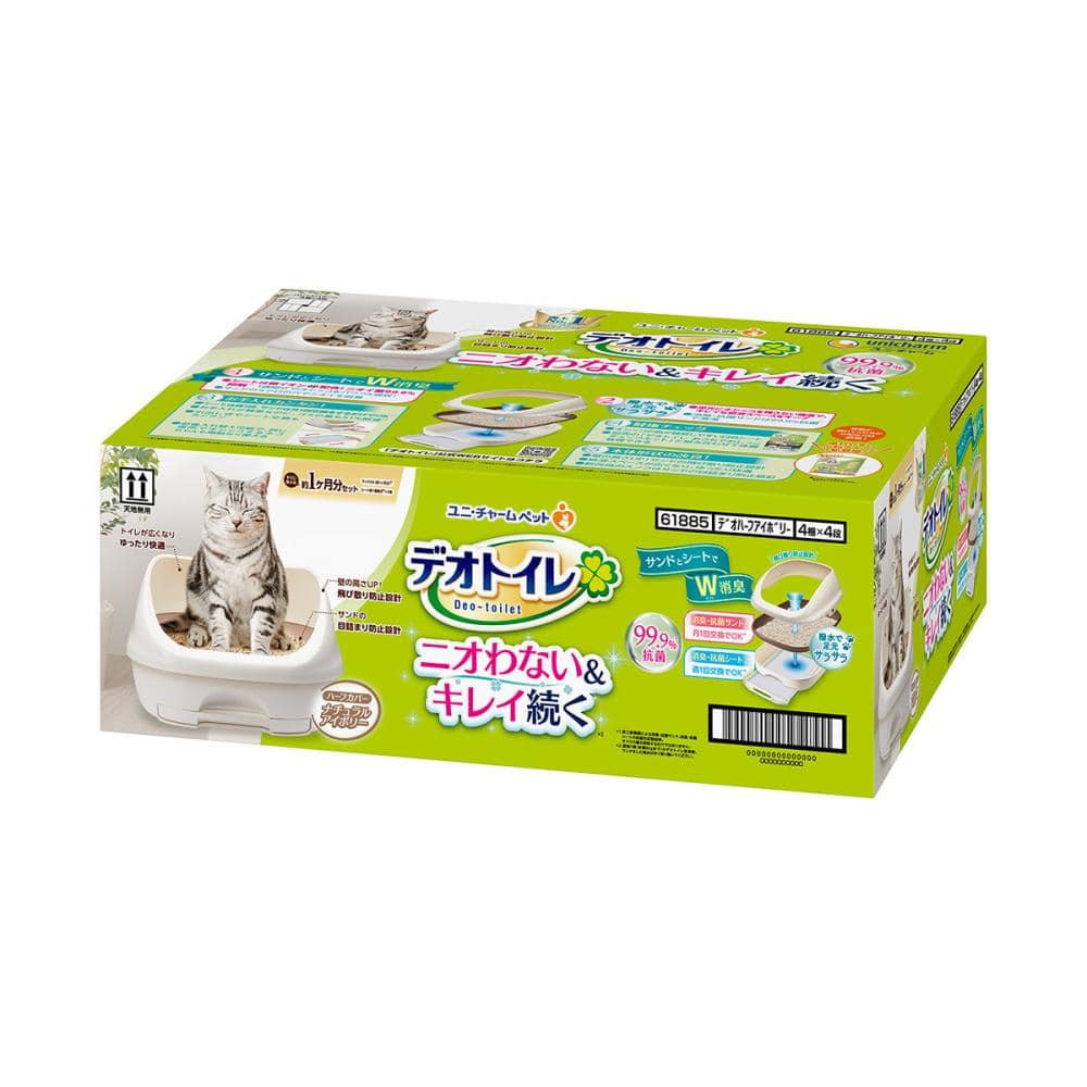 ・ニオわない&キレイ続く※1 ・99.9%抗菌※2 ・シートとサンドでW消臭・撥水で足元サラサラ清潔 ・シートは週1回※1、サンドは月1回交換※1でお手入れカンタン ※1愛猫1頭(体重8kgまで)のデオトイレ使用時。ウンチをした場合は早く取り除いてください。 ※2第三者機関による消臭・抗菌サンド、消臭・抗菌シートの抗菌性試験結果。すべての菌を抑制するわけではありません。