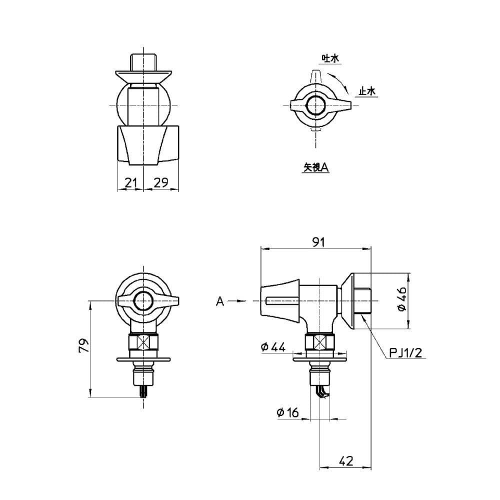 洗濯機用水栓万一ホースが外れても安心の自動閉止機能付寒冷地用