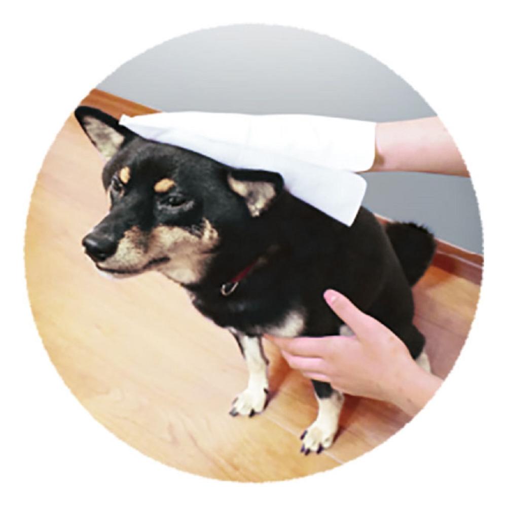 商品の利用(調理)方法:1.袋を開封し、ミトン型シートを端部分より1枚ずつ取り出す。2.手にはめて、気になるペットの汚れをやさしくふきとる。