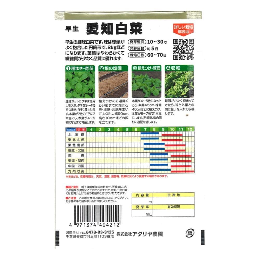 早生の結球白菜です。球は球頭がよく抱合した円筒型で、2kgほどになります。葉質はやわらかくて繊維質が少なく品質に優れます。
