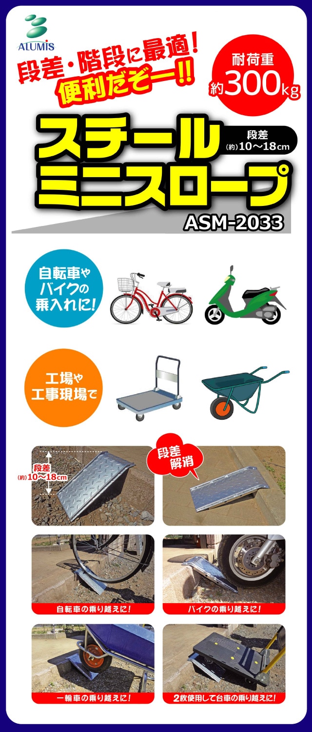 耐荷重:300kg 段差目安約10~18cm 材質:スチール・亜鉛メッキ加工