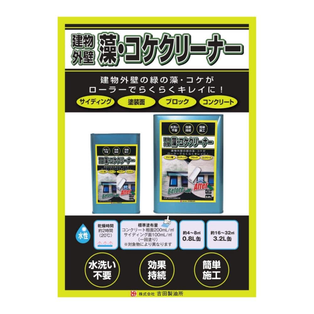 建物・外壁などの藻やコケの除去剤。水性、低臭タイプ、クリア。薄めずにすぐ使える。