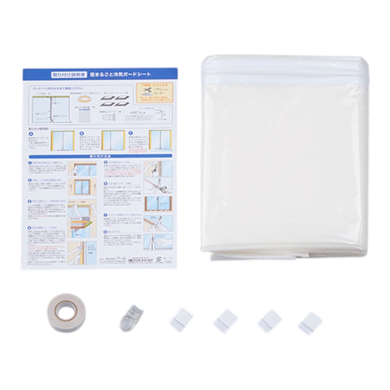 【材質】 フィルム:ポリエチレン ファスナー部:ポリエステル・ナイロン 粘着テープ:PET 粘着剤:アクリル系 【付属品】 両面テープ(約7m)・面ファスナーテープ(4枚)・滑落防止クリップ(1個)