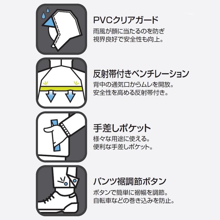 "●PVCクリアガード:雨風が顔に当たるのを防ぎ 視界良好で安全性も向上。
