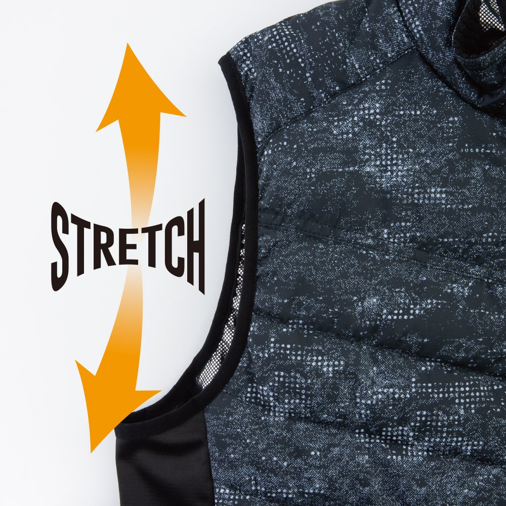 ●背中上部と脇ポケットの計3か所にある電熱シートが背中やお腹、ポケットの中で手も温めることができます。