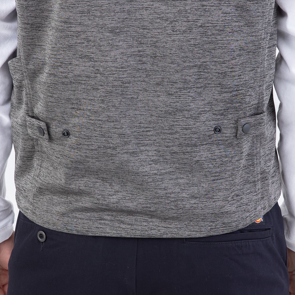 ●背中上部と脇ポケットの計3か所にある電熱シートが背中やお腹、ポケットの中で手も温めることができます。