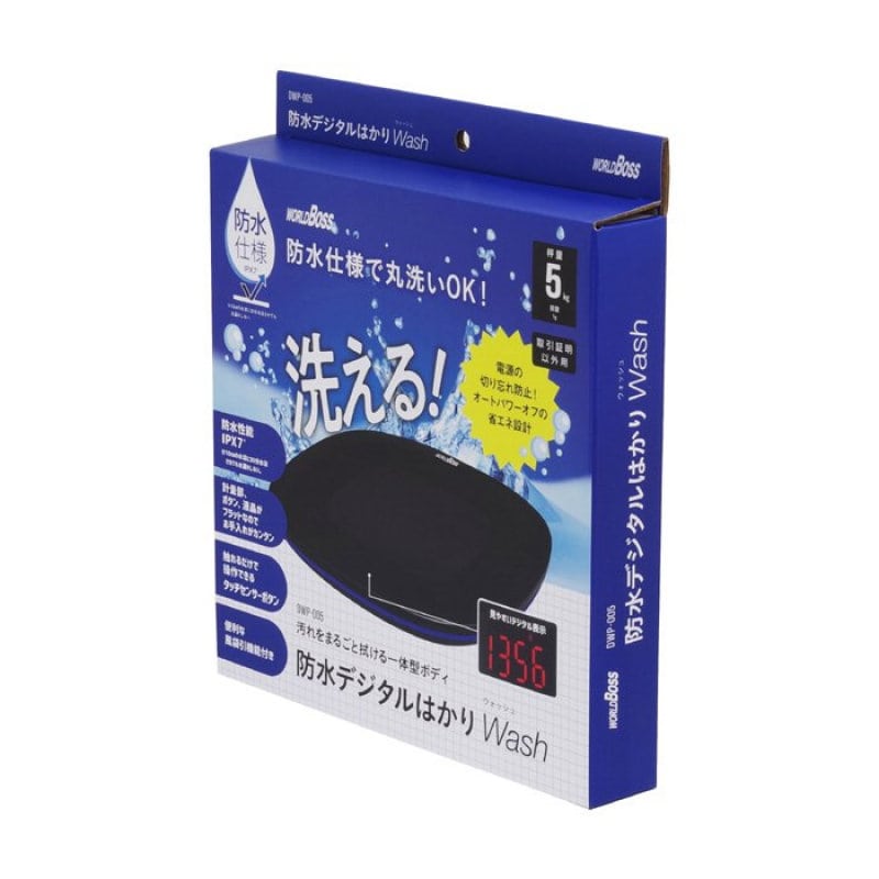 [材質]ABS、シリコン(パッキン) [電源]単4電池×3本(別売り) [防水規格]IPX7(10cmの水深に30分水没させても水漏れしない) [ひょう量]5,000g/5,000ml [目量]1g/1ml [精度g]3g~1,000g/±5g、1,000g~2,000g/±5~8g、2,000g~3,000g/±8~11g、3,000g~4,000g/±11~14g、4,000g~5,000g/±14~17g (※mlでも同じ) [使用測定範囲]3g~5,000g (※mlでも同じ) [製品サイズ]縦×横×高さ:200×200×25mm [製品重量]310g