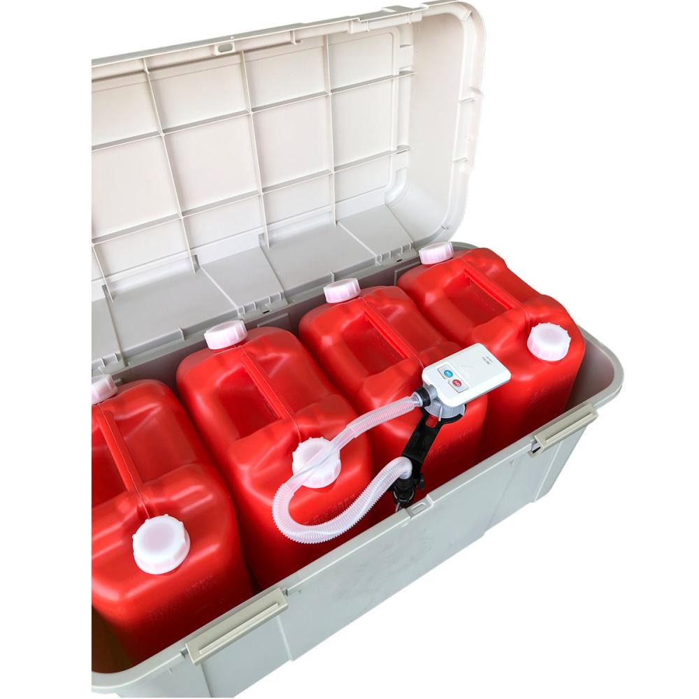 ●タンク固定式ですので、固定したままベランダコンテナに収納出来ます。※ベランダコンテナの高さ(内寸)が413mm以上ある場合