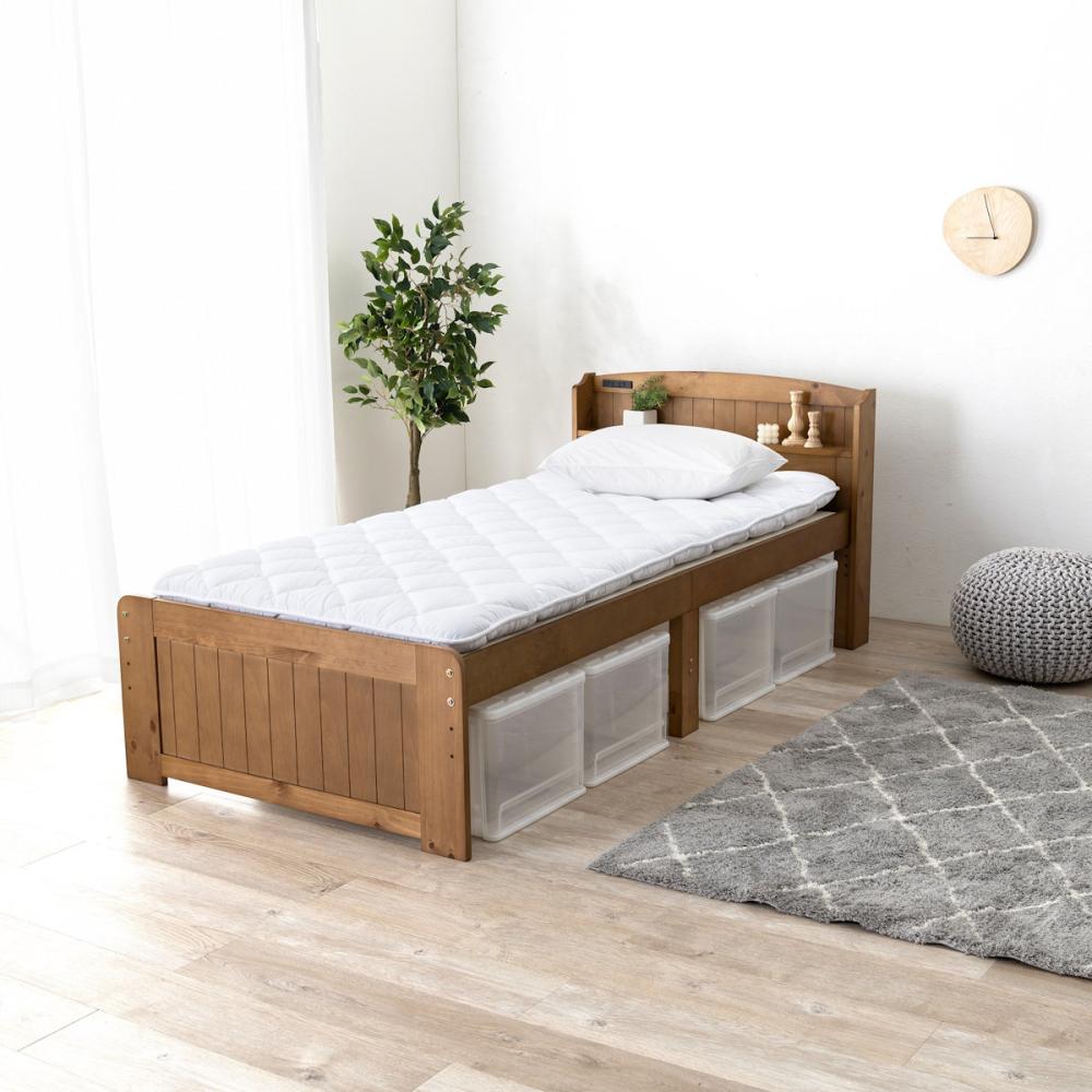 ■3段階の高さ調節が可能 床面下の高さを約20/26/32cmの3段階で調節が可能。寝起きがしやすい高さに。床面下に収納するケースに合わせても変更できて便利です。 ■こだわり設計のすのこで安定感のある寝心地 すのこ裏には、厚みを従来品の約1.5倍(約4.5cm)にした桟木を12本使用することで強度をアップ。寝ていてもきしみにくい抜群の安定感を実現。強度と耐久性はボーケンの検査にも合格しています。 ■コンセント付の宮板には、携帯電話の充電はもちろん、ライトや目覚まし時計の設置にも便利。 ■2口コンセント付き