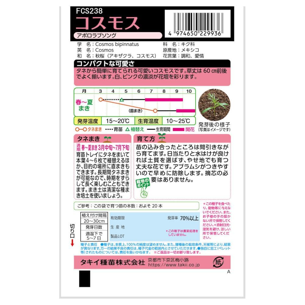 タネから簡単に育てられる可愛いコスモスです。草丈60cm前後でよく揃います。白、ピンクの濃淡が花壇を彩ります。