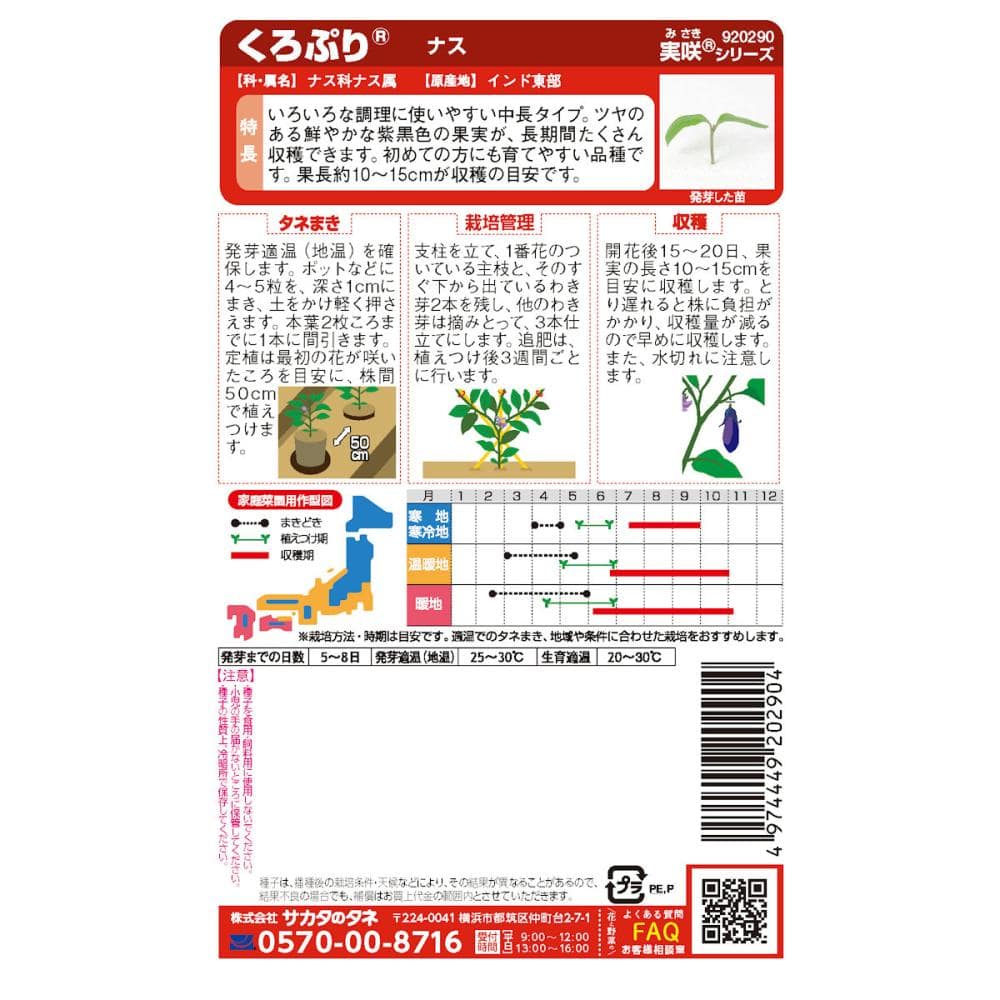 ●掲載のパッケージ画像(表側・裏側)に記載されている蒔き時期、収穫時期、発芽適温、発芽率、品種特長、その他注意事項をよくご確認の上、ご注文ください。