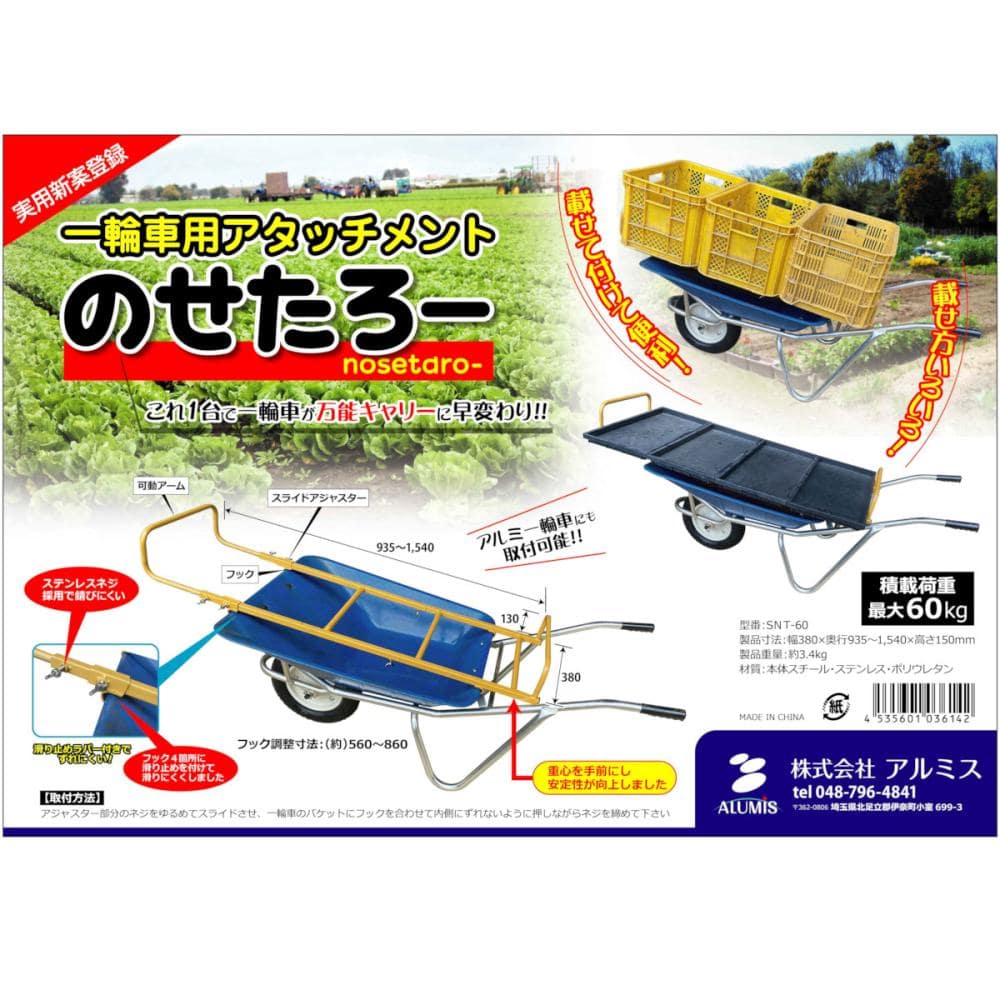 【取付方法】アジャスター部分のネジを緩めてスライドさせ、一輪車のバケットにフックを合わせて内側にずれないように押しながらネジを締めてください。