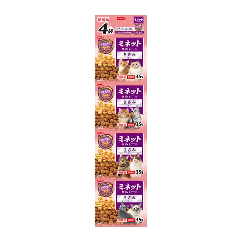 原材料・成分:肉類(チキンミール、ミートミール、ささみ、チキンレバーパウダー)、馬鈴薯でん粉、甘藷ミール、動物性油脂、魚介類(フィッシュエキス、フィッシュパウダー)、ビール酵母、セルロース粉末、酵母細胞壁、植物発酵抽出エキス、殺菌乳酸菌、納豆菌、ビタミン類(A、D、E、K、B1、B2、B6、葉酸、コリン)、アミノ酸類(メチオニン、タウリン、トリプトファン)、pH調整剤、ミネラル類(カリウム、鉄、亜鉛、銅、ヨウ素)、酪酸菌