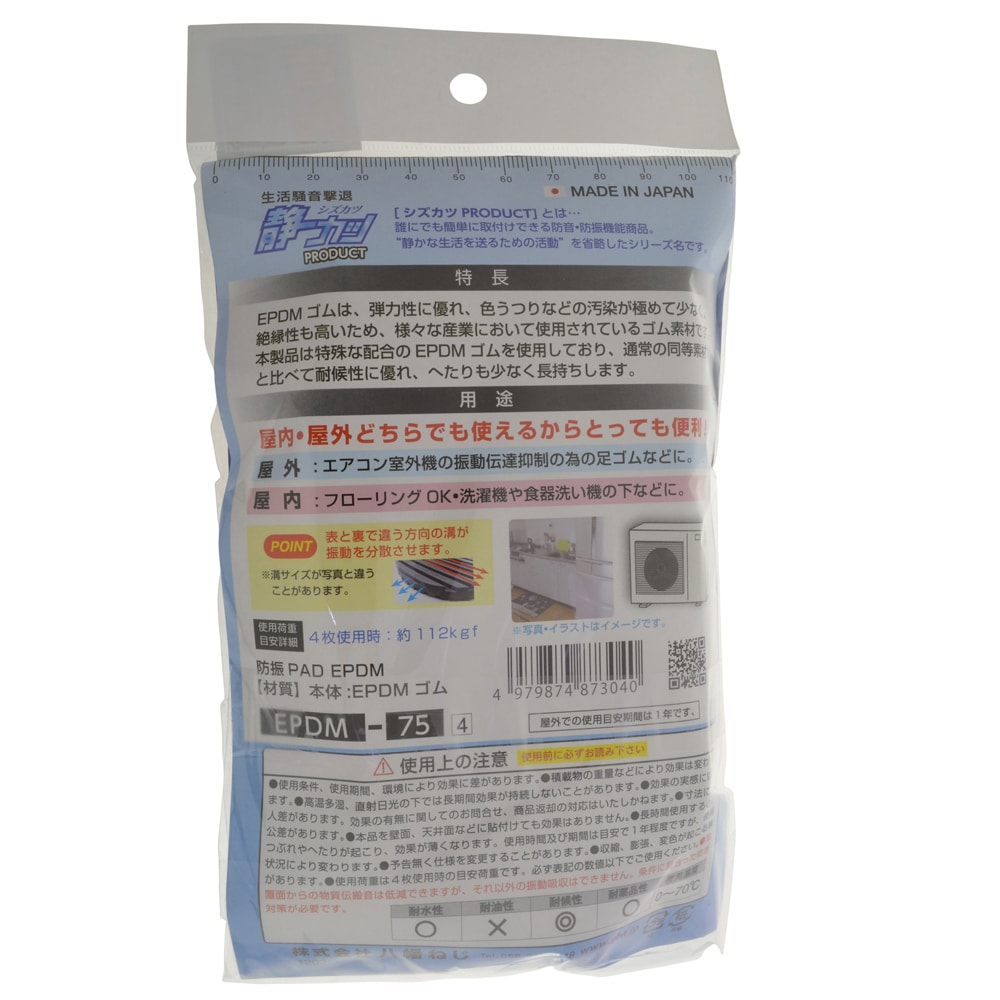 ●特殊EPDM製で耐候性、耐久性に優れており、色移りが少ない。 ●エアコンの振動伝達抑制、食器洗い機などの振動吸収に。