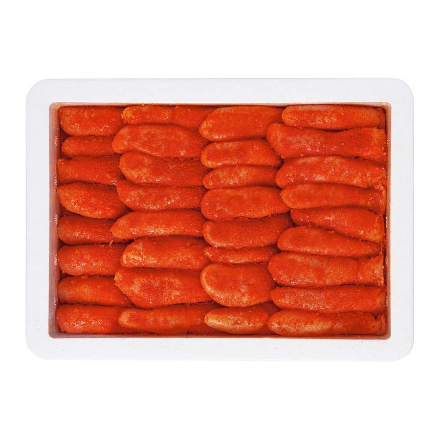 辛子明太子が1kg入って!!1本1本手作業で丁寧に並べて箱詰めし、1kgの大容量をお買い得な値段でお届け!