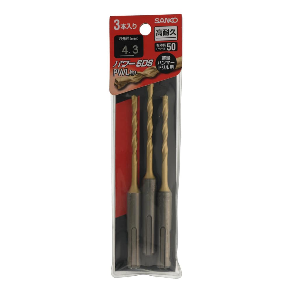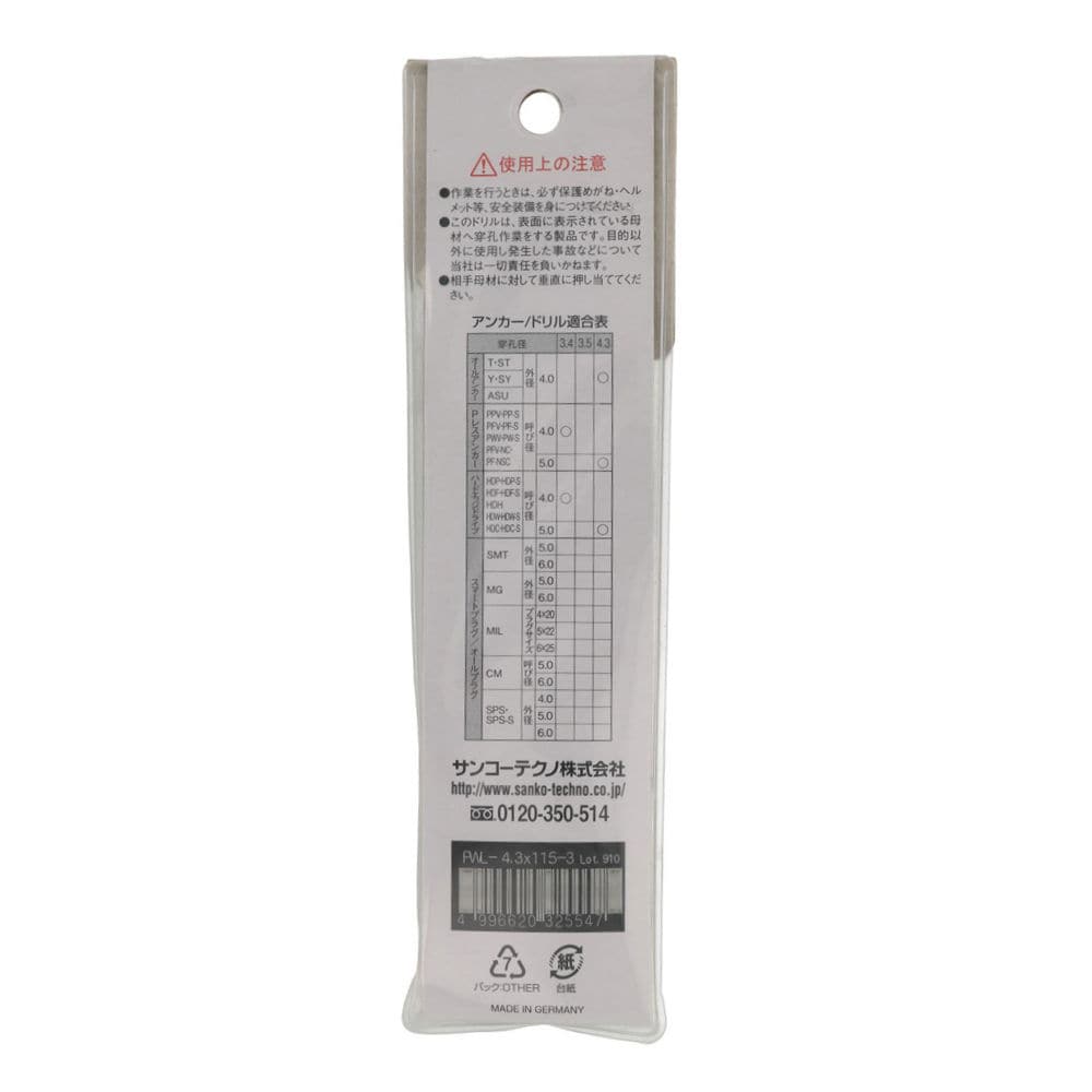 ●被削材:コンクリート、ブロック、モルタル、石材、デッキプレート(貫通)+コンクリート ●刃径(mm):4.3 ●適合機種:軽量ハンマードリル ●全長(mm):115 ●有効長(mm):50 ●シャンク:SDSplus