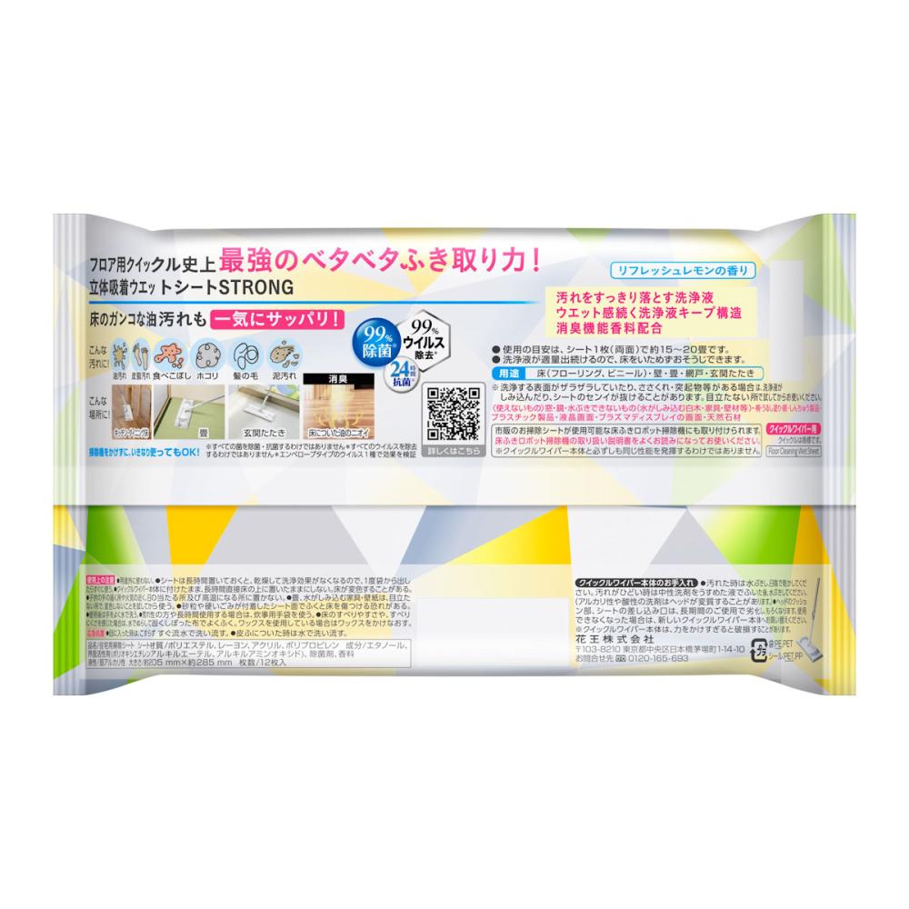 床のベタベタ汚れをゴシゴシせずにふき取る強力タイプの床用ウエットシート。 フロア用クイックル史上最強のふき取り力*でホコリ・髪の毛はもちろん、足裏汚れや油汚れをスッキリふき取ります。 キッチンやダイニングの床そうじにピッタリです。 足裏の感触でわかるほど劇的サッパリ床へ。 消臭機能香料配合で床についたニオイの消臭効果も。 リフレッシュレモンの香り。 *当社フロア用ウエットシート調べ