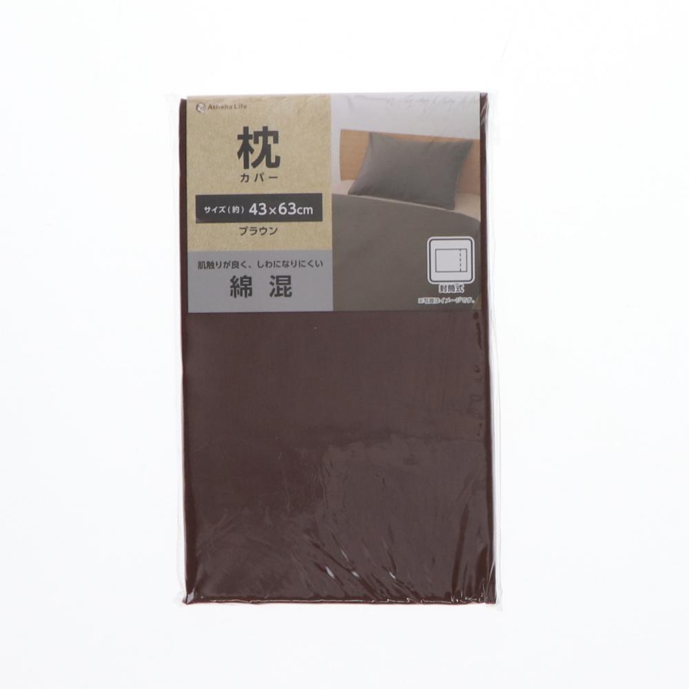 アテーナライフ 綿混無地枕カバー 43×63cm ブラウン