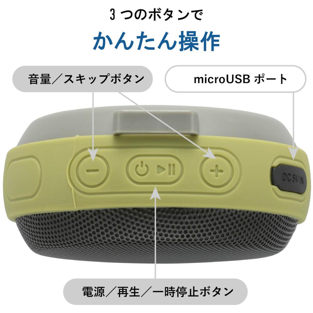 ● キズや衝撃に強いシリコン素材のラウンドボディ ※シリコン素材は外周部・ハンドベルトのみ ● Bluetooth標準規格Ver.5.1、ワイヤレスで音楽再生 ● 高出力3W ● IPX6(耐水形)で水に強い ● microUSB充電式