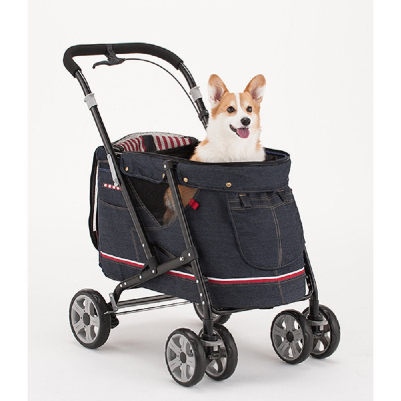 30kgまでの中型犬対応!フレームが太くなり、前機種(DECA)より強度がさらにアップしました。ハンドブレーキ付だから安心!前後輪にはサスペンションがついているので、振動にも強い!ペット乗り降りが楽にできるように、後面に乗り降り用スロープがあります。折りたたんだ状態で引っ張れるので、持ち運びも楽々です。
