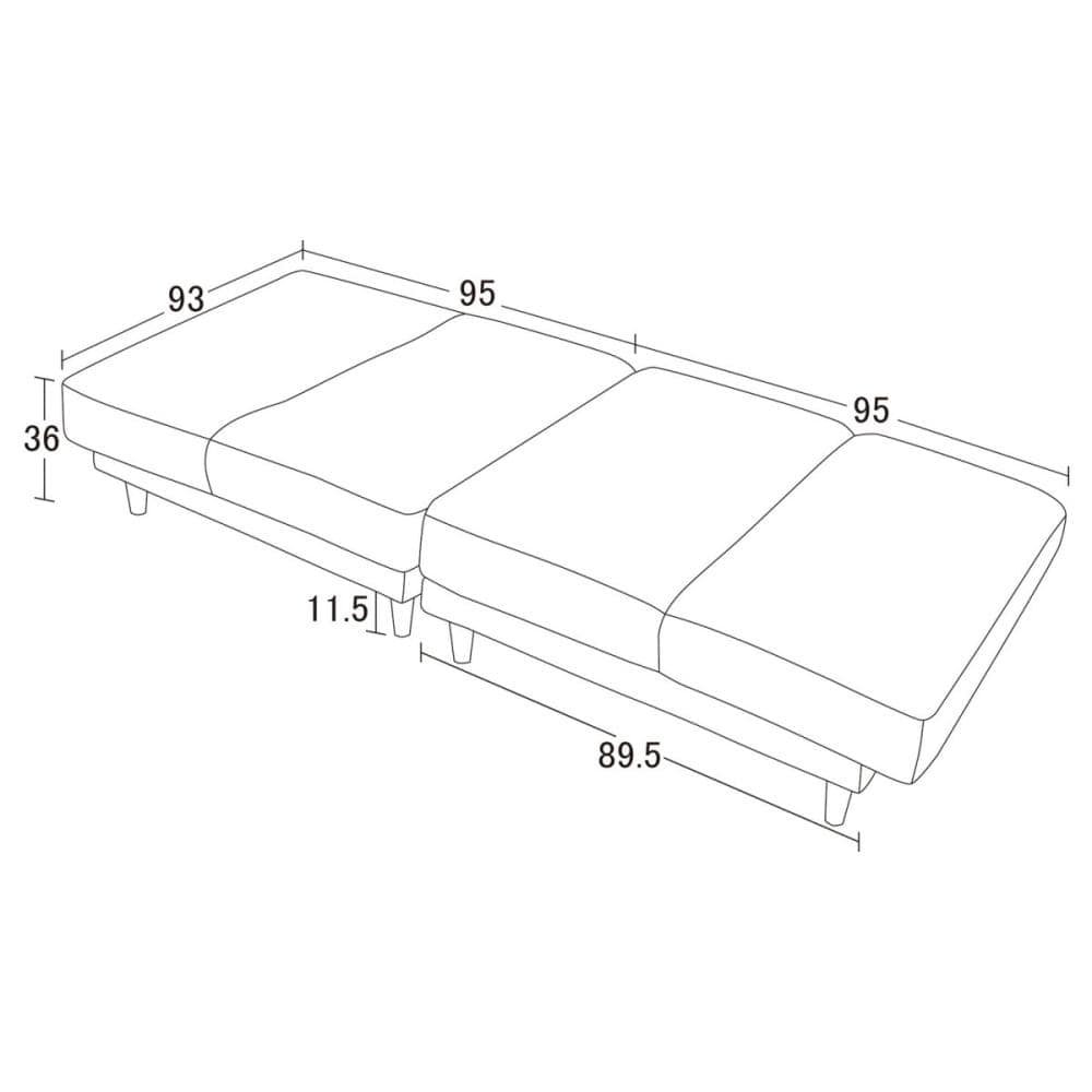 背もたれフラット時(1台あたり)/約幅93×高さ36×奥行95cm