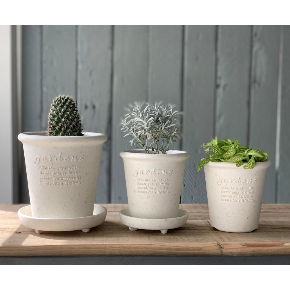 軽くて耐久性に優れ、資源の節約や有効利用にもつながる地球に優しい、環境に優しい素材です。花や緑をやさしく演出します。