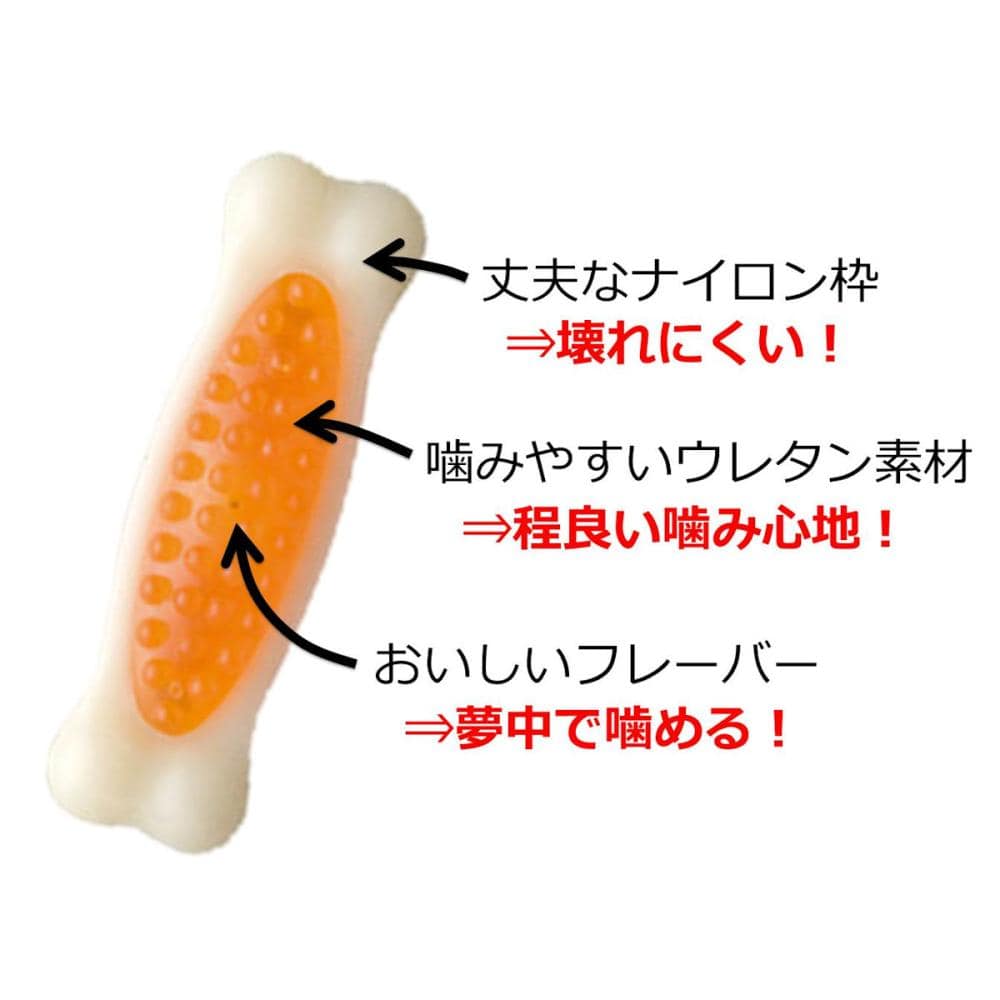 商品の利用(調理)方法:持ちやすくて噛みやすい骨型のデンタルトイ。LLサイズ。おいしいベーコンフレーバー付き。