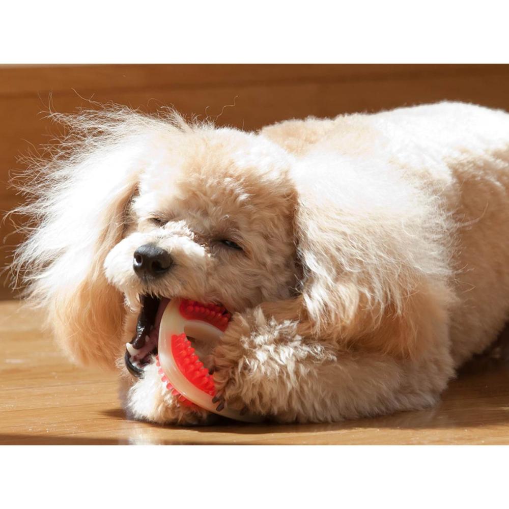 商品の利用(調理)方法:口の奥まで入りにくい形状のデンタルトイ。全体がやわらかいダブルソフトタイプ。Sサイズ。美味しいベーコンフレーバー付き。
