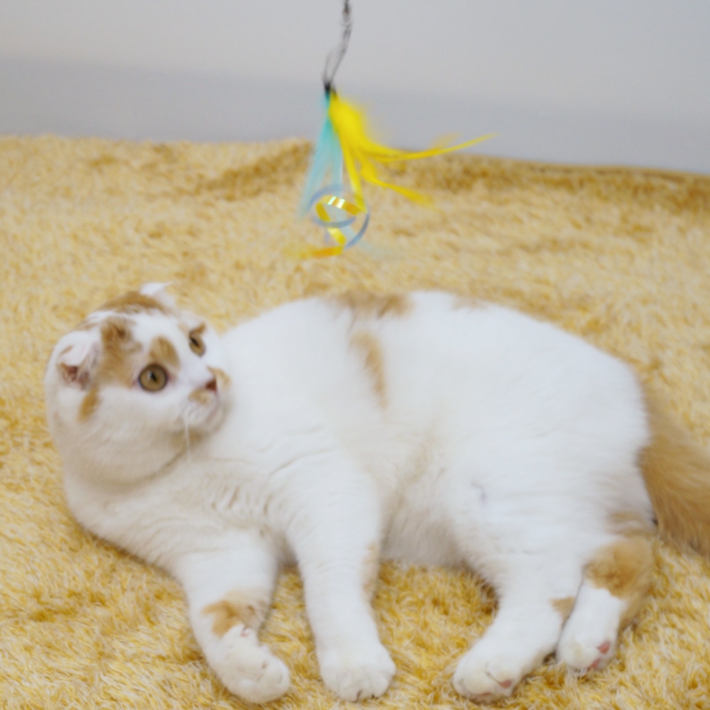 ●長い竿に合わせたボリュームのあるサイズで羽と細目のカールリボンはどちらも猫ちゃんが大好きな素材。