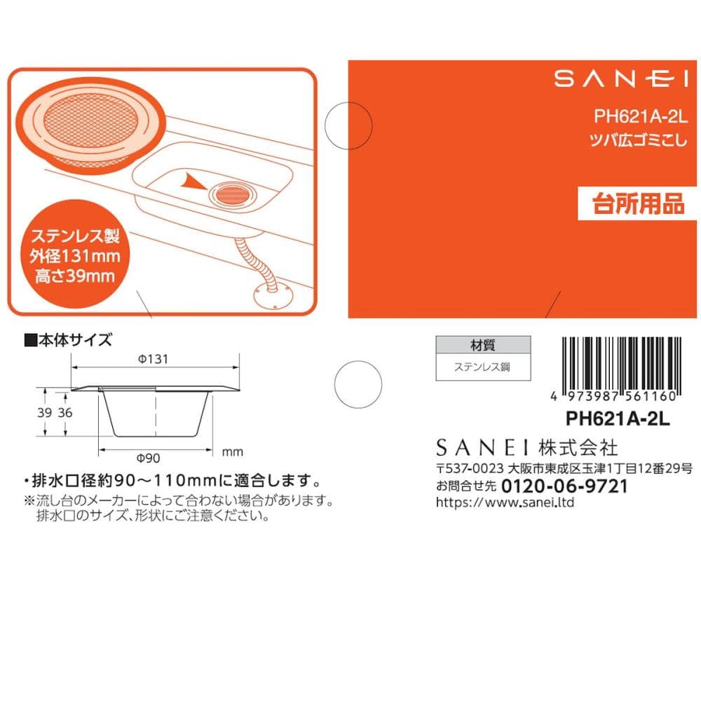 90~110mmの排水口に対応。