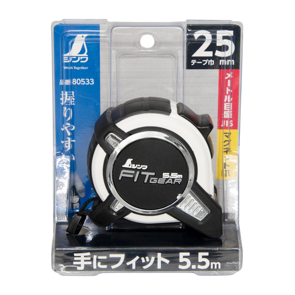 ■テープ仕様 ●テープ長さ:5.5m ●テープ巾:25mm ■本体:ABS樹脂 ■カバー:エラストマー樹脂 ■テープ:炭素工具鋼(SK)