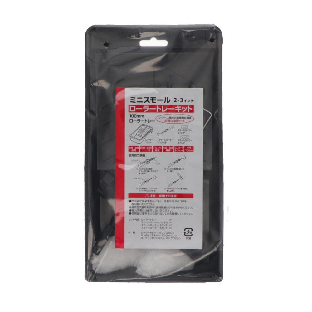 ●水性・油性兼用 ●内装・外装兼用 ●調剤使用可 ●強溶剤使用不可 <セット内容> ローラートレーx1 スモールローラーハンドル×1 スモールローラー2インチ(中毛13mm)×1 スモールローラー 3インチ(中毛13mm)×1 <材質> ローラートレー /ポリプロピレン ハンドル/スチール・ポリプロピレン ローラー/ポリエステル・ポリプロピレン