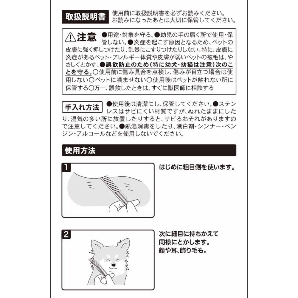 ●炎症を起こす原因となるため、ペットの皮膚に強く押しつけたり、乱暴にこすりつけたりしない。特に、皮膚に炎症があるペット・アレルギー体質や皮膚が弱いペットの被毛は、やさしくとかす。