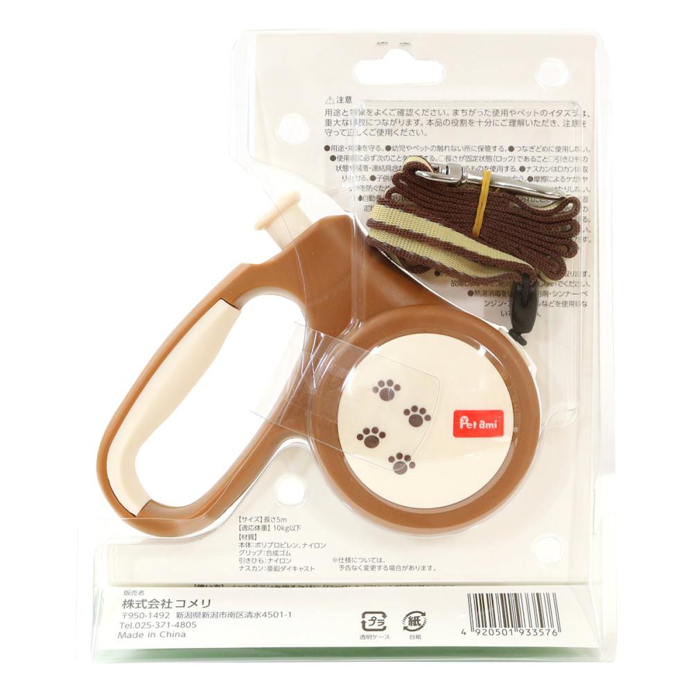 ●ワンタッチのリール式。丸ヒモの長さ最長5.0m。小型犬用10kg以下。