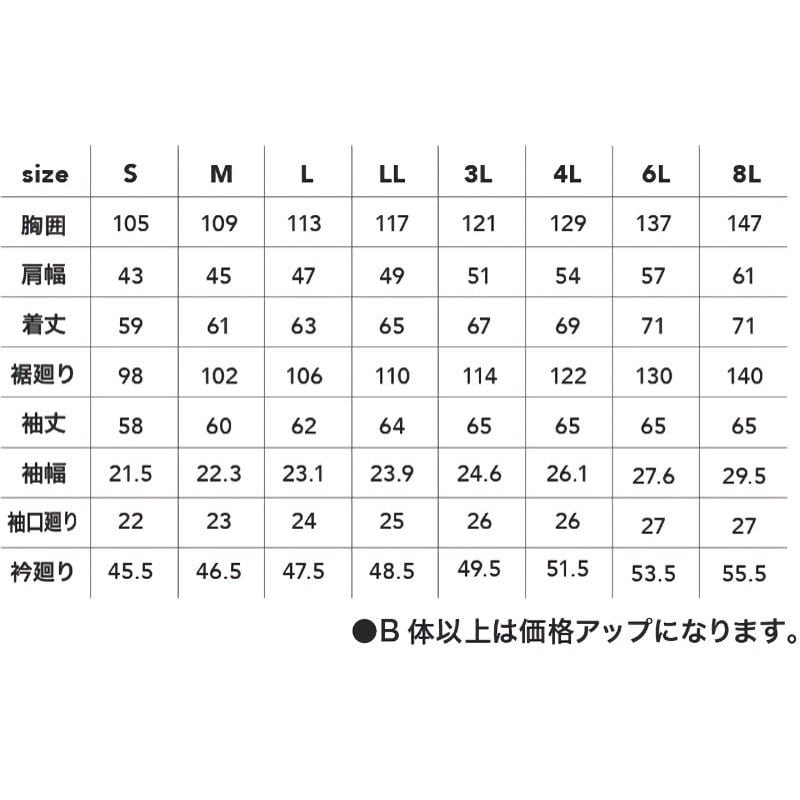 単品サイズ:3L(胸囲121cm肩幅51cm着丈67cm袖丈65cm)