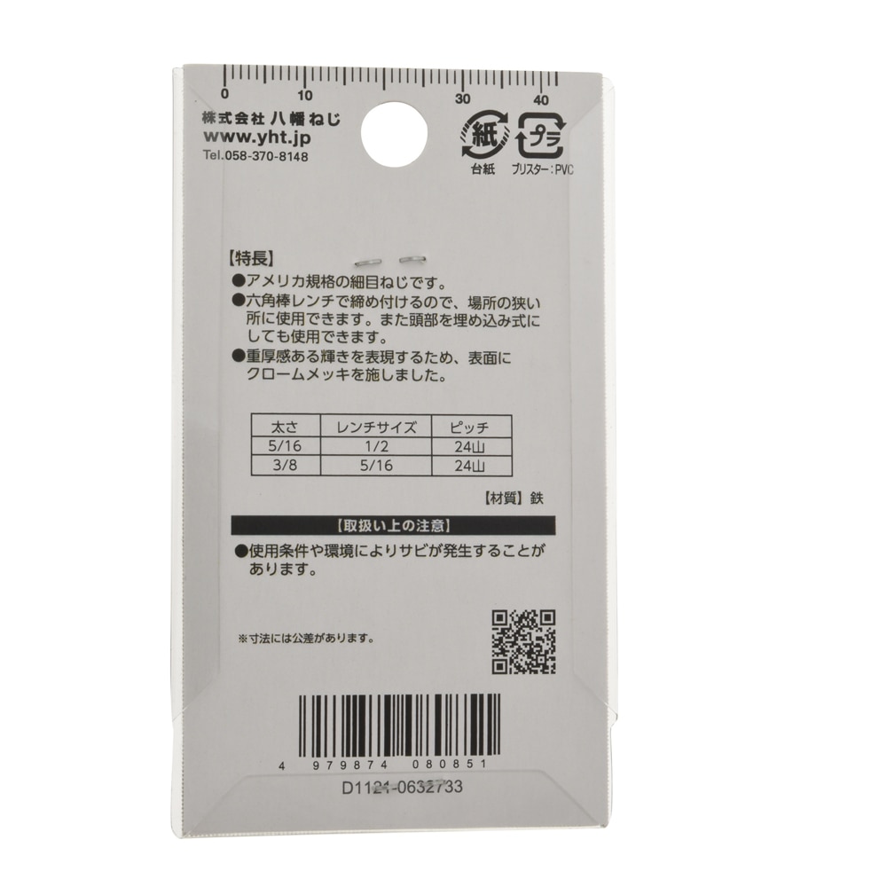 八幡ねじ UNFキャップCr 24山 5/16×1 1/2 2本入