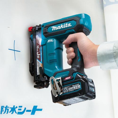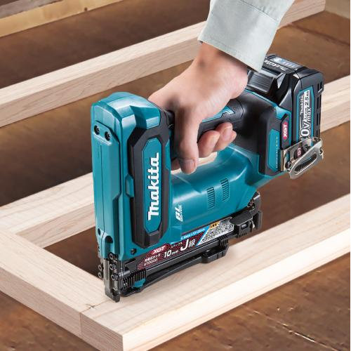 ●低反動で軽快に連続打ち込み ●J線ステープル幅10mm ●引きずり打ちや振り打ちも可能 ●リチウムイオン40Vmax2.5Ahバッテリ2個付き ●防じん防水保護等級IP56(本体・バッテリ) ●ステープル装填本数:100本 ●使用ステープルサイズ:J線10mm幅×長さ13~25mm ●充電時間:実用充電約19分・フル充電28分 ●1充電あたりの作業量:約6000本 ●標準付属品:本体・バッテリBL4025×2個・充電器DC40RA・ノーズアダプタ・セフティゴーグル・プラスチックケース